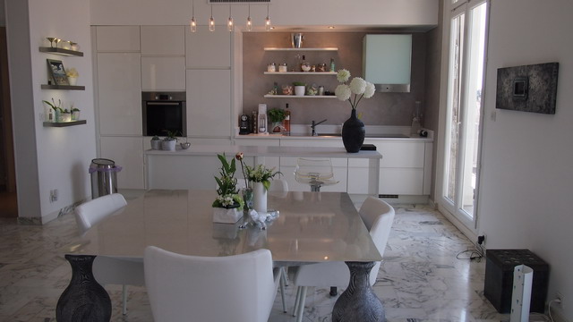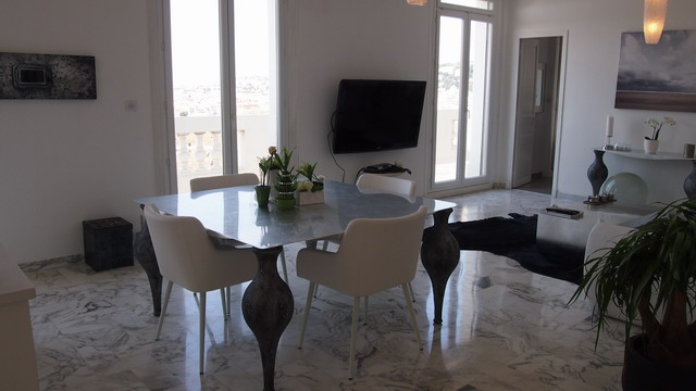 Two of the bedrooms and the kitchen and the lounge are opened on the terrace. The apartment is located a few minutes away from the city center.