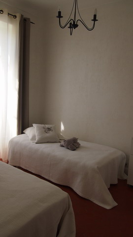 chambre avec lit double en 140 cm, balcon vue mer (ventilateur mural) + chambre communicante avec lit double en 140 cm,