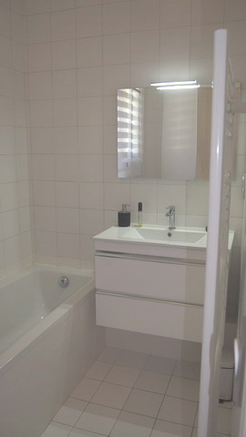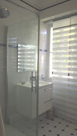 1 Salle de douche, 1 salle de bains avec baignoire, wc.